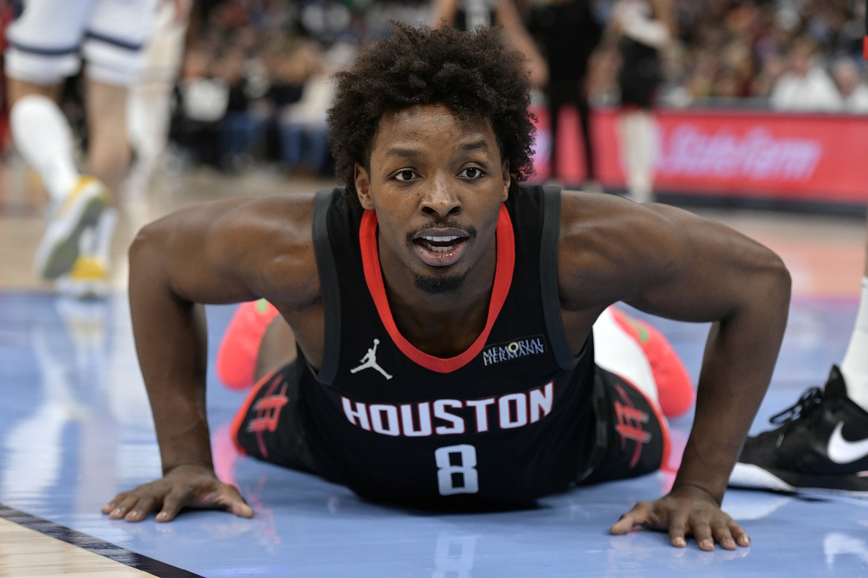谈到本场启用泰特、以及后者对于整个替补席带来的能量时,乌度卡说:“是的,我认为我们的整个替补席都很出色。我们只用了三名替补球员:杰西恩(泰特)、里德(谢泼德)和克林特(卡佩拉),但三人的表现都属于高水准。杰西恩的表现很棒,他在换防方面提供了不同的维度,甚至可以防守更高大的对手。所以他对位对方大个子时做得很好。当然,克林特的上场时间也很有价值,里德也是。虽然我们轮换的球员不多,但他们都产生了巨大的影响,这在正负值上也体现得很明显。”